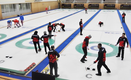 平昌オリンピックに出場するカナダ、イギリス、ノルウェーのカーリングチームが、軽井沢アイスパークで事