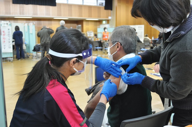 軽井沢町は2月2日、新型コロナウイルスワクチン3回目の集団接種を始めた。軽井沢町中央公民館を会場に