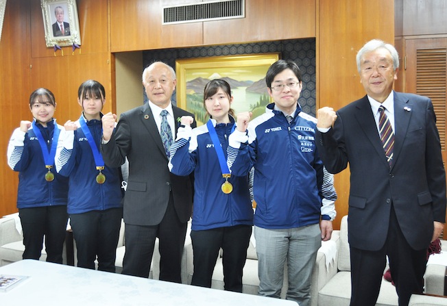 カーリングの女子チーム「SC軽井沢クラブJr.」が12月21日、藤巻進町長を訪ね「第30回日本ジュ