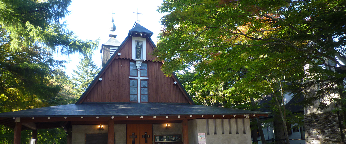 設計は米国建築学会賞を受賞したアントニン・レーモンドが担当し、ワード神父によって設立されたカトリック教会です。この教会は、堀辰雄の小説「木の十字架」や「美しい村」、川端康成の「掌の小説」にも登場し、多くの作家達を魅了した場所です。 内部の木組みも木造ならではの暖かみがあり、障子を扱った窓のデザインはレーモンドの妻ノエミ夫人の作品で、彼の故郷であるチェコスロバキアの「森の教会」をイメージしたことが窺えます。また結婚式を行う場としても人気のスポットとなっています。