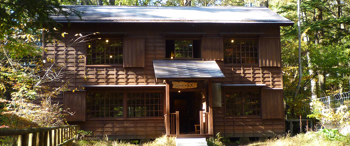 聖公会宣教師のアレキサンダー・クロフト・ショー(A.C.ショー)が1888年、軽井沢に建設した最初の別荘です。A.C.ショーは「軽井沢開発の父」と呼ばれ、寂れて何もなかった軽井沢の地を訪れ、一夏を過ごしました。 この建物は最初大塚山に建てられましたが、昭和初期に軽井沢教会敷地内に移築、改装されました。 その後、ショーハウス復元委員会によって1986年にショー記念礼拝堂の隣に移築、復元されました。シンプルながら温かみのある木造りの別荘は軽井沢の原型として、また元祖別荘としてその姿を留めています。