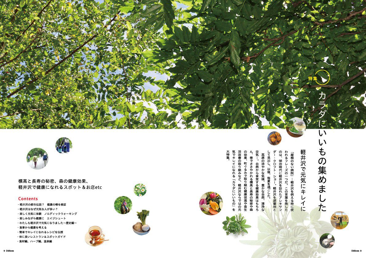 軽井沢に住むと健康になれる? なぜ元気な人が多い?/話題のスポーツに挑戦/簡単できれいになれる料理を伝授/キレイに元気になれるスポット&お店 etc