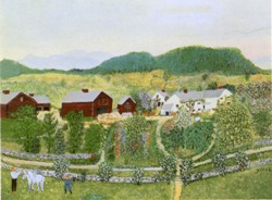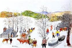 アンドレ・ボーシャンとグランマ・モーゼス展 今回は『素朴派』の二人による絵画が会場を彩っている。『素朴派』とは独学で絵を描き始めた画家たちのことで、その作品は心温まる素朴な魅力にあふれている。