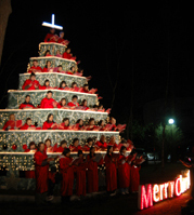 高さ7m、幅9m、60人が収容できる巨大クリスマスツリー。聖歌隊と一緒にクリスマスキャルを歌いクリスマスを祝う。