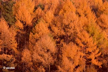 ![]() ツタウルシ 紅葉の時期はその年その年の気候に大きく左右されますが、ツタウルシは例年と変わりなく一番早く紅葉し目を楽しませてくれました。モミジも徐々に赤みを増してきました。しかし軽井沢の紅葉といえばカラマツでしょう。植林されたカラマツが一斉に黄葉し、山々が黄金色に染まります。今年は温かい日が続いたせいか、黄葉が例年よりも遅くなっています。今年の見頃は11月10日前後だと思われます。皆さんも黄金色に染まったカラマツ並木の下を散歩してみませんか。 |