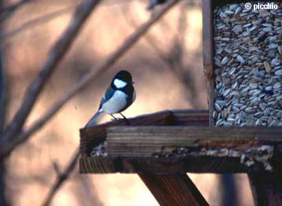 一段と冷え込んだ朝、森の木々は氷のドレスを身にまとい、朝日を浴びてきらきらと光っています。しーんとした静けさと張りつめた冷気が気持ちよく、寝ぼけた頭をすっきりとさせてくれます。 森の奥にある野鳥観察小屋は、そんな朝の静けさを吹き飛ばすかのように活気に満ちています。静かに小屋へ入り、窓ガラスをのぞき込むと「いました!!」。たくさんの小鳥が、せわしなく餌台の上の餌をついばみに来ています。食べ物が乏しい冬の間だけ、鳥たちが好きなヒマワリの種やアワ、ヒエ、牛脂などを置いているのです。 目と鼻の先の距離に集まっている鳥たちをじっと観察していると、種類によって好きな食べ物や食べ方が違う事に気付きます。シジュウカラなどのカラ類は、餌台からヒマワリを一粒つまんでいっては枝に止まり、両足で押さえてくちばしで割って食べています。くちばしが太くて丈夫なイカルやアトリなどは餌台の上に陣取り、くちばしと舌を器用に使いながら次から次へとヒマワリを割って食べています。地面ではホオジロやカシラダカなどの鳥が、とがったくちばしでアワやヒエなどの小さな実を拾っています。キツツキの仲間は真っ先に牛脂に飛びつき、しきりにつついては長い舌で取り込んでいます。そんな鳥たちの姿を見ていると、あっという間に時間が過ぎてしまいます。食べ物が少ないこの時期だからこそできるこの野鳥観察。皆さんも試してみませんか。