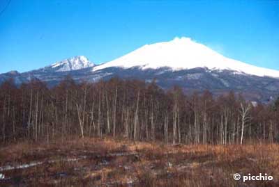 新しい雪が降ってひときわ美しさを増すのが浅間山でしょう。去年の10月20日に初冠雪を記録した浅間山も、2月から3月にかけてが最も白く雪化粧します。こんな時は、雪原となった畑や森の中から、自分だけの浅間山ビュー・ポイントを探してみてはいかがですか。「軽井沢野鳥の森」にも見通しのよい場所(あずま屋付近)があり、雄大な浅間山冬景色をのぞむことができます。 |