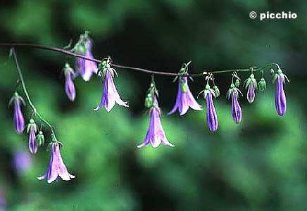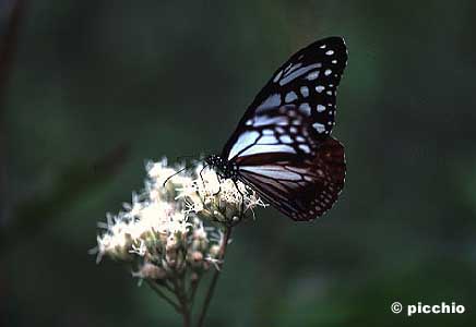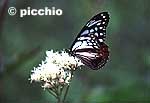 | 写真(上)アサギマダラとヒヨドリバナ、写真(下左)ソバナ、(写真下右)スジグロセンノウ |