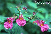 沢筋にはえているツリフネソウやキツリフネという植物は、種を自分ではじき飛ばします。種の入ったさやは、熟すと軽く指で摘んだだけでプルン!とはじけ、中の種を飛ばすのです。イギリ スではキツリフネのことを「touch-me-not」と呼ぶそうです。「私にさわらないで」。触られるとこらえきれずにはじけてしまうからでしょうか。そう言われると、何だか触ってみたくなりませんか?