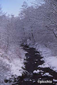 「湯川」は軽井沢町を流れる川です。湯川水系の流域面積は、町の面積の9割以 上を占めます。白糸の滝を源にする本流と、町内の森から流れるせせらぎやいくつかの支流(泥川、発地川、茂沢川など)を集めた湯川は、「千曲川」へと合流します。千曲川は新潟県に入ると「信濃川」と名前をかえて、日本海へ注ぎますから、軽井沢で降った雨や雪は、そのほとんどが、日本海への旅をすることになるのです。