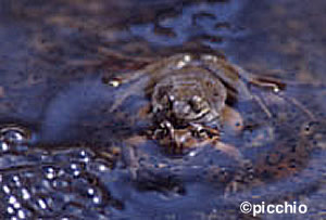 写真上:産卵-ゼリー状のたまごが左側に見える。