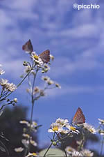 一日中雨が降った翌日というのも、蝶とお近づきになれる時です。野原に行くと、お腹をすかせたベニシジミやルリシジミといった小さくてかわいらしい蝶たちが、花の蜜を夢中で吸っています。おどかさないように、そっと近づいてみてください。