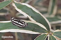 森の中の少し明るいところで、タテハチョウの仲間コミスジとすれ違いました。パタパタ・スーイスーイと滑るように飛ぶ蝶です。と思ったら、引き返して帽子や背中に止まった、ということもよくあります。せっかくですから、体つきをよく観察させてもらいましょう。おや?足が4本しか見あたらない・・・。ご心配なく。蝶の中には、一対目の足が退化して4本足に見える種類も多いのです。