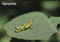 (下)森でよく見るアオフキバッタ