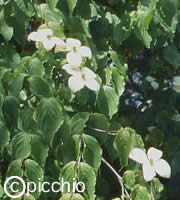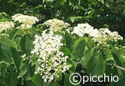 例えばミズキ。大きいものでは高さ20mを超える木になります。沢山の小さな白い花が、お皿状に集まってつきます。