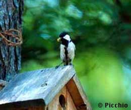 住宅地にも住んでいる身近な鳥で、野鳥の森でも一番数が多い種類です。人がかけた巣箱もよく利用してくれます。どうやら巣を作る場所が少ないらしく、別荘の郵便受けなどにも巣を作ります。 |