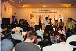 軽井沢ラヴソングアウォード 第1次審査で15曲を決定 「軽井沢から21世紀のラヴソングを」のテーマで5月1日から募集が行われていた『軽井沢ラヴソングアウォード2003』の第1次審査が7月6日、軽井沢町のロッジゆうげん荘「ホールしなの」で開催された。応募の締め切りは6月30日までだったが、北海道から九州まで13歳〜85歳の男女からの応募があり、その数は予想を上回る702曲。この日の第1次審査には、10代から60代までの軽井沢の町民100名が審査員として参加。予備選で選ばれた75曲を約4時間かけて審査した。 審査方法は、表面に『アカハラ』(軽井沢の町鳥)、裏面に『ニホンリス』(軽井沢の町獣)が描かれたうちわを審査員が1本ずつ持ち、1曲聴くごとに良いと思ったら表を、曲を残すことに迷ったら裏を掲げるという方法(残さなくてもよいと思ったら何もしない)。この結果、15曲が本選コンサート出場に、また、補欠として5曲がノミネートされた(ノミネート曲名などについては、イベントページ、MUSICから軽井沢ラヴソングアウォードのHPで詳細発表)。本選コンサートは9月28日(日)に軽井沢町にあるベルデオープンシアターで開催される。(詳しくはイベントページ参照) |
