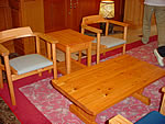 森(しん)世紀工房 軽井沢展示会 〜森世紀プロジェクト・県産材を使った家具〜 8月19・20日、旧軽井沢ホテルで「森(しん)世紀工房」家具の初めての展示会が開かれた。会場には唐松材を使ったテーブルやイス、カウンターキッチンのほか組子や木曽漆器などの伝統工芸の作品も披露された。2日間で約400人が訪れ、実際に家具に触れて相談や注文する一般の客や、業者からの引き合いも多く、大盛況のうちに終了した。 長野県が平成14年度から進めている「森(しん)世紀プロジェクト」は、豊かで健全な森林の育成と県産材の需要拡大、伝統工芸や文化の継承・発展など様々なアプローチから、森林を取り巻く問題の総合的な解決に取り組むプロジェクト。その一環として立ち上げられた森世紀工房は、県内の建具業者に所属する技術認定されたマイスター達が集結し、からまつ等の間伐材を使った家具を製造して売り出していこうというもの。現在森世紀工房に参加している会社は大小50社。木工デザイナー小田原健さんがデザインし、職人達が試作を繰り返し、木ぬくもりとさわやかさが感じられる作品が出来上がった。今まで高価とされていた国内の木工家具に比べると、値段も低め。製品の均一化、大量生産も可能、もちろん建物の内装や据え付け家具、完全オーダーメイドからセミオーダーまで、ニーズやライフスタイルにあわせて相談にも応じる。 ●連絡先/森世紀工房事務局 TEL.0269-22-5745 |