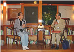 絵本の森美術館初の試み えほんサロン〜軽井沢のつどい〜 8月23日、軽井沢絵本の森美術館ではイラストレーターの宇野亜喜良さんを招き、第1回「絵本サロン」を開催した。午後4時からのサイン会に続き、6時からは、同館顧問の英米文学者、吉田新一さんが聞き手となって「イブニング・トーク」が行われ、宇野さんは手がけた絵本の手法やイラストレーションに対しての考えなどを語った。そのあと、会場をエルツおもちゃ博物館のレストランに移し、ソプラノ独唱を交えたパーティが催された。 「初めての開催ですが、今後もいろいろな切り口で絵本の世界を紹介したいと思っています」と館長の土屋芳春さんは語っている。 |