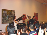 晩夏の夜のジャズコンサート MUSIC IN MUSEUM 日本ジャズ史上初の年間2作のゴールドディスクを獲得し、注目を集めているジャズピアニスト、アキコ・グレースのコンサートが、8月30日、脇田美術館で開催された。絵画の並ぶ広い会場には200人の聴衆が集まり、「スマイル」や「グリーンスリーブス」など軽快なジャズの響きを楽しんだ。アキコ・グレースさんは「ボストンの美術館で演奏したことがあり、その時のことを思い出します」と語り、初めてのチェロとの共演を、サイトウキネンに出演するチェロ奏者、古川展生と行った。 |