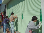森のまちつくり隊 森のまちつくり隊(隊長・佐藤一郎)で行っている「シャッタープロジェクト(中軽井沢商店街を中心に傷んだシャッターに野鳥の絵を描いてきれいにする)」は、10月4日〜5日、中軽井沢駅前 |