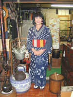 杉浦和子氏、軽井沢訪問 10月11日(土)〜10月16日(木)までぎゃらりぃ一色で『2003年 古布襤褸(らんる)のぬくもり 杉浦和子作品展』を開催する、古布デザイナーの杉浦和子氏が追分で古布を扱っている骨董品店・時幻を訪問した。昨年、長野で個展を開催した帰りに軽井沢へ立ち寄り、今回の作品展開催を決めたとのこと。『木綿は江戸時代まではとても高価で庶民には手の出せなかった生地。木綿の寿命は永遠と言われるほど長持ちする生地で、東北地方の刺し子など非常に緻密で良い物が多い。古くからの日本の文化や良い物は良い、ということを伝えるのはとても大事。』と語った。 |
