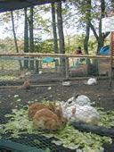 軽井沢タリアセンのうさぎたち 軽井沢タリアセンの入園口を入ってすぐ右側にある、うさぎたちのエリア。スタッフに声を掛ければ可愛いうさぎたちと直接ふれ合うこともできる。昨年から飼い始めた4羽のうさぎも今は20羽ほどになり「増やそうとは思ったけど、こんなに増えるとは」と、スタッフの予想を超えて増えてしま