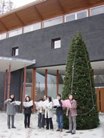 11/27(土)、矢ケ崎公園で「ホワイトクリスマスin軽井沢」のシンボリックツリーの点灯式が行われた。軽井沢中学校吹奏楽部の演奏、「手のひらの会」の手話による唄、キャロリングの後、カウントダウンと共に澄みきった夜空に花火が打ちあがり、シンボリックツリー、矢ケ崎橋などのイルミネーションがいっせいに点灯された。まわりでは大きな歓声が上がり、寒さを忘れて記念撮影をする人達でにぎわった。