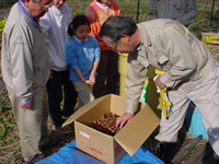こうして蒔かれた木楢や橡の木は、畑で1m程の苗木に育ててから、毎年5月に行われる「植樹祭」で、峰の茶屋付近の国有林に移植する。たくさん蒔いても、芽が出て育つのは1割にも満たないというが、今年で18年目を迎えるこの運動も、中心となるメンバーの地道な努力により、ゆっくりと着実に芽を出し始めている。