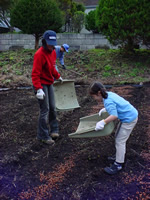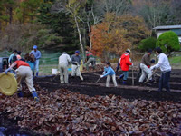 穏やかに晴れた11/3の文化の日、秋の恒例行事「アウトドアどんぐり体験」が行われ、「どんぐり運動の会」の呼びかけで集まった有志によって、町内の小中学生が集めたどんぐりの実およそ3万個を畑に蒔く作業が行われた。