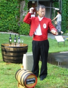 また、スペイン祭りオープニングのこの日、シェリー酒を高い位置から注ぐベネンシアドールが場内庭園で4回にわたって行われ、見学者にシェリー酒がふるまわれた。 ●メルシャン軽井沢美術館:TEL 0267-32-0288 |