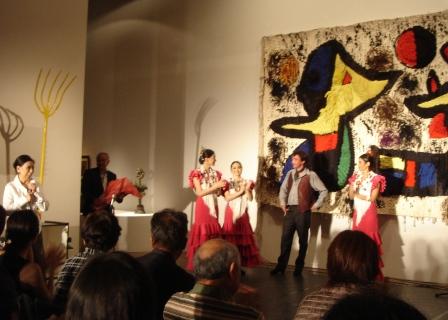 8月6日(土)はオープニングイベントとして「小松原庸子スペイン舞踊団」によるフラメンコとトークショーが行われた。当時の日本ではまだあまり知られていなかったフラメンコに出会い、スペインに渡った頃の思い出や、足は不自由ながらも素晴らしいフラメンコを踊る女性に感動して弟子入りしたエピソードなど小松原さんのトークを織り交ぜ、次々と美しいフラメンコが披露された。ミロのタピストリーの前で踊るフラメンコの数々に満席の観客席からは大きな拍手が続いた。