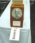 『軽井沢ショー祭』運営のための募金箱を彫刻家・船山氏が制作 避暑地「軽井沢」を見出した宣教師A.C.ショーを称え、清楚な軽井沢を継承しようと『軽井沢ショー祭』は毎年8月1日に開催されているが、ショー祭実行委員会では、今後も継続的に運営するための基金を集める募金箱を設置することを決めた。木製の募金箱にはショー師の紹介プレートを付け、横に募金の趣旨を記す。上部には、ショー記念礼拝堂庭にある胸像の作者、彫刻家の船山滋生さんに依頼し、ミニチュアサイズのショー師胸像を付ける。予定では20個作り、募金箱を管理できるホテルやミュージアム、観光会館、駅案内所などに依頼する。 |