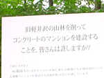 マンション建設「同意は困難」 軽井沢町桜の沢に長谷工コーポレーションがマンションの建設を計画している問題について、軽井沢町は「同意は困難」との回答をしていたことが明らかになった。佐藤雅義町長は、大規模開発による水害に対して住民の中に不安を指摘する意見があり、それを解消しなければ都市計画法32条1項の同意をすることは困難、との姿勢を示していた。計画は旧軽井沢桜の沢の斜面を造成して鉄筋コンクリート2階建てマンションを建設、切り崩した土砂を嬬恋高原に運ぶというもの。同社は昨年6月に開発許可を申請したが、県が安全面の問題を指摘し、町の同意を得るよう指導していた |