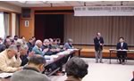 17日(土)中軽井沢区民会館において『軽井沢町の「保健福祉複合施設を考える町民の会」設立および意見交換の町民集会』が開かれた。施設については12月の町議定例会で用地取得費など約2億5000万円の補正予算が1票差で可決しているが、町民の間からは慎重な検討を求める声なども上がっていた。会の冒頭では町に対して公開質問状を提出した町民から質問状の内容と、それに対する町からの回答が紹介され「町の福祉政策全体に関わる問題。高齢者医療・福祉など将来的な懸案はほかにもある」との意見を示した。町民による討論でも「議会でしっかりと議論をしたほうが良い」「西地区の発展という意味では賛成だが急すぎる」といった声が聞かれ、この問題に関する意識の高さが伺われた。 |