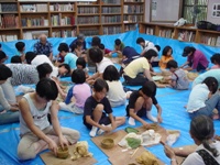 8月6日、子供たち約30人とその父兄が追分宿郷土館に集まり、縄文土器を作る催しが行われた。青いビニールシートが敷き詰められた図書館で、子供たちは熱心に粘土と格闘を繰り返していた。 ●追分宿郷土館:TEL0267-45-1466