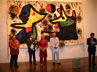 8月6日(土)はオープニングイベントとして「小松原庸子スペイン舞踊団」によるフラメンコとトークショーが行われた。当時の日本ではまだあまり知られていなかったフラメンコに出会い、スペインに渡った頃の思い出や、足は不自由ながらも素晴らしいフラメンコを踊る女性に感動して弟子入りしたエピソードなど小松原さんのトークを織り交ぜ、次々と美しいフラメンコが披露された。ミロのタピストリーの前で踊るフラメンコの数々に満席の観客席からは大きな拍手が続いた。